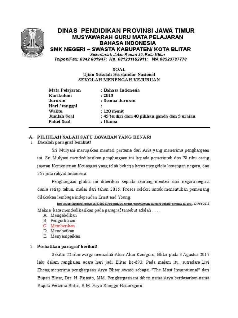 Soal Usbn Bahasa Indonesia Smk 2019 - Guru Ilmu Sosial