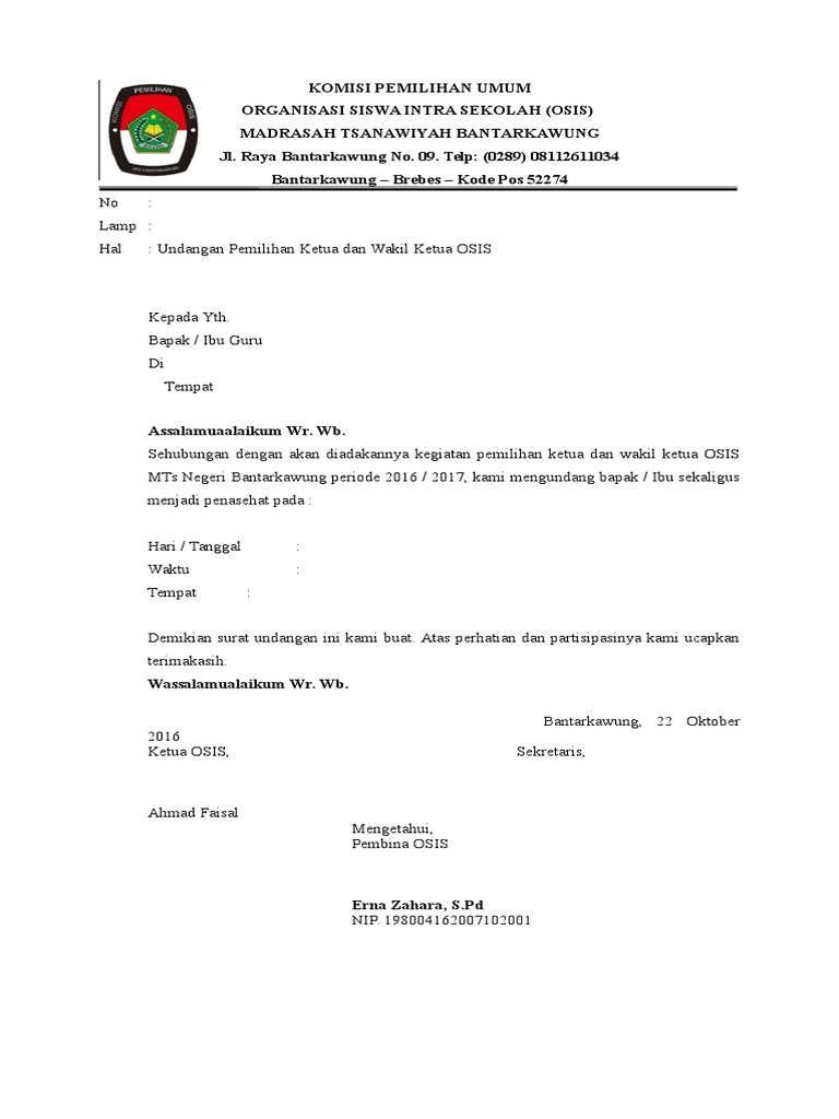 Contoh Surat Undangan Osis - Mosaicone