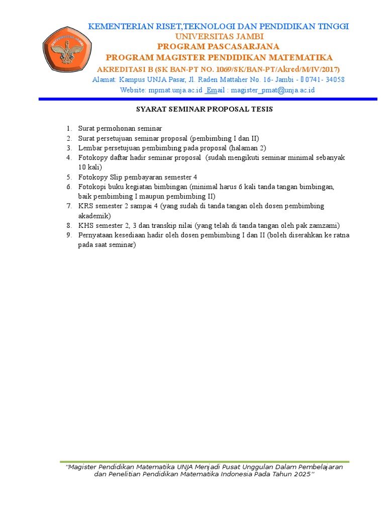 Syarat Seminar Proposal Tesis | Magister Pendidikan Bahasa dan Sastra Indonesia