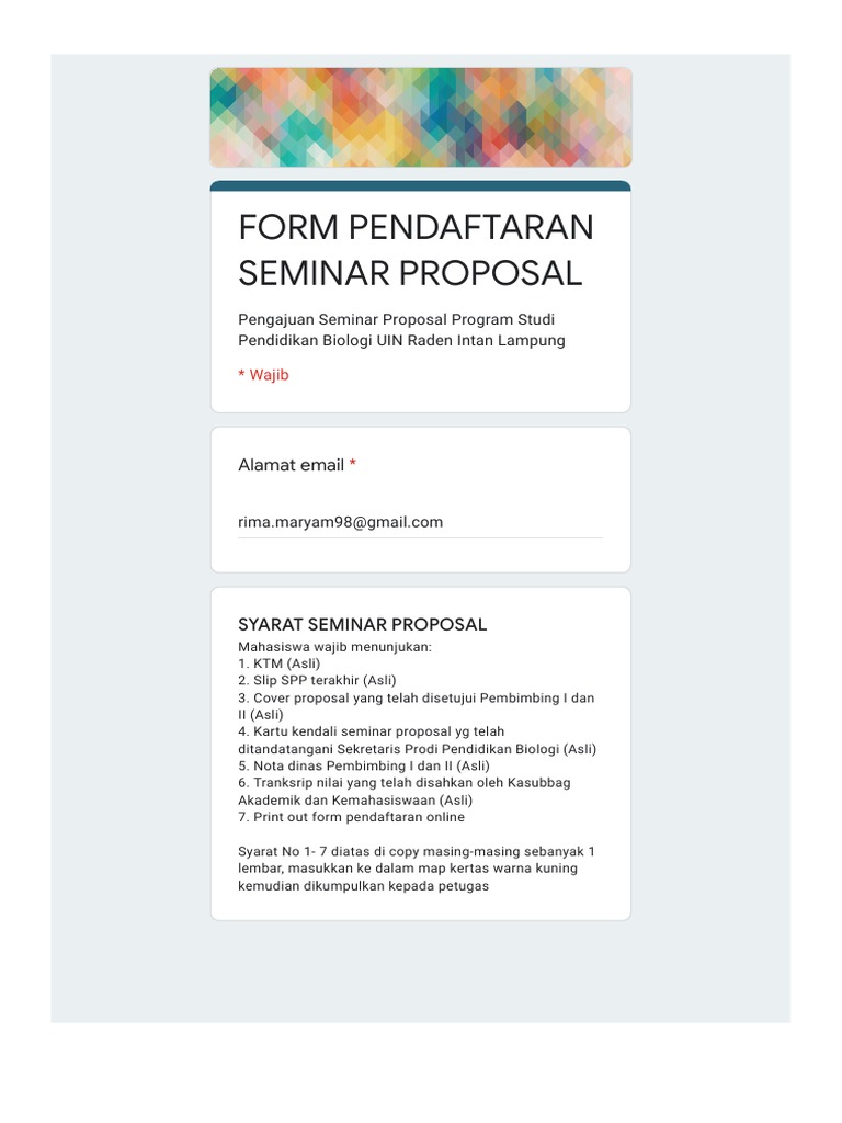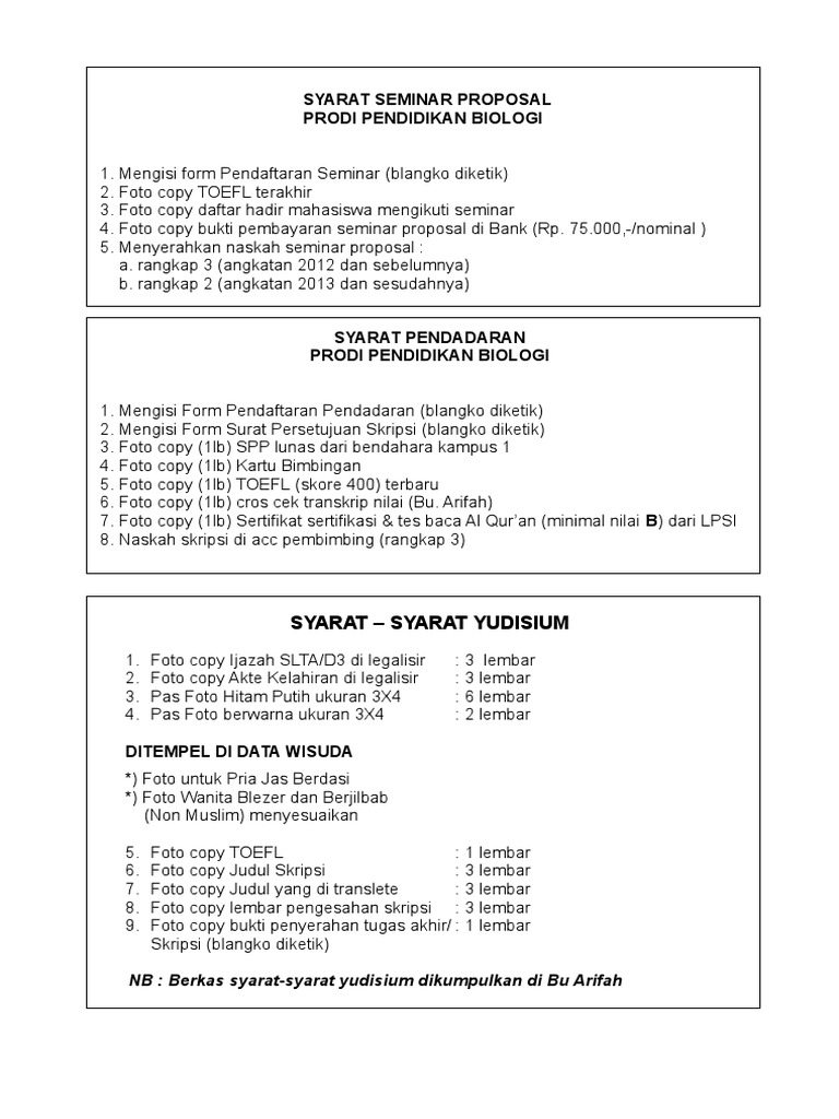 Syarat Seminar Proposal Prodi Pendidikan Biologi