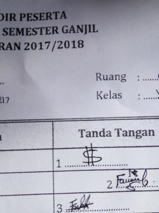 FAKTA WOW & BERITA INDONESIA : “https://t.co/ExepjScobU Menulis tanda tangan kerap dilakukan saat mengisi daftar absen di sebuah sekolah. Namun terkadang beberapa siswa membuat pola tanda tangan begitu ‘kreatif’. . Ada