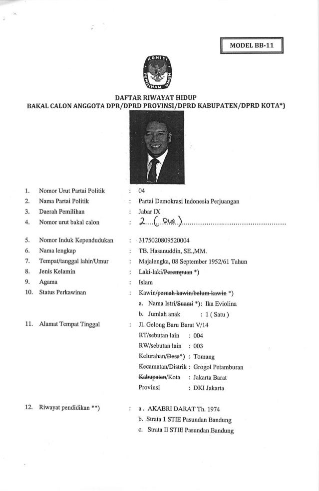 Profil Tb Hasanuddin Calon Gubernur Jawa Barat