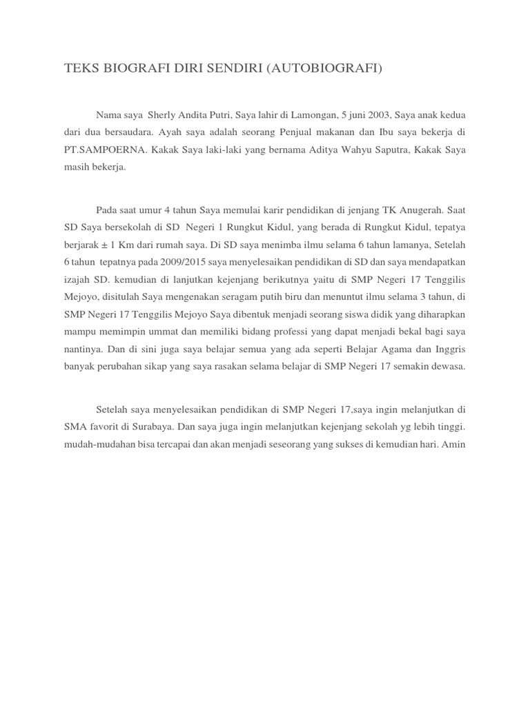 Contoh Biografi Diri Sendiri | Orang tua | Siswa | Guru | Tokoh Pahlawan