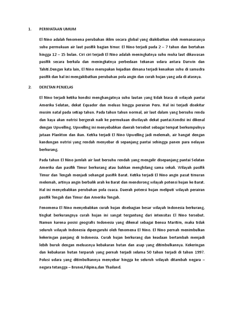 Teks Eksplanasi El Nino