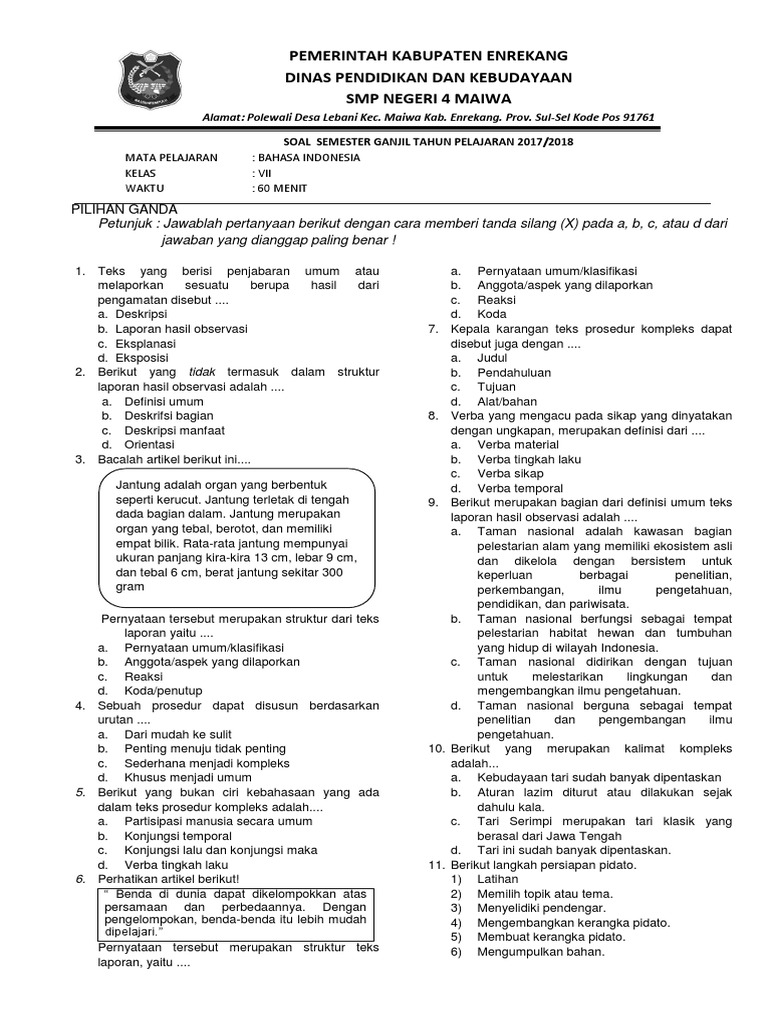 Soal Bahasa Indonesia Kelas 7 - Teks Deskripsi - Bahasa Indonesia