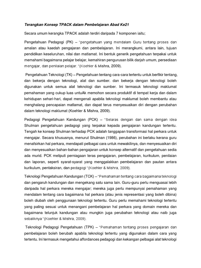 Terangkan Konsep TPACK Dalam Pembelajaran Abad Ke21