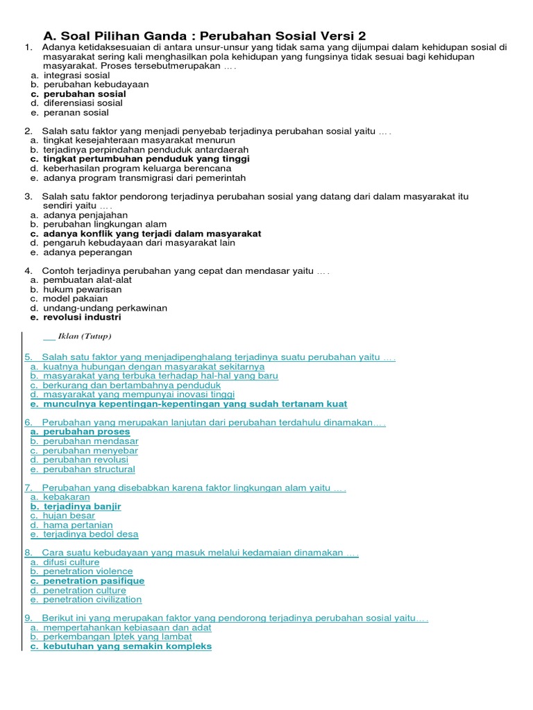 Soal Dan Jawaban Perubahan Sosial Beserta Dampaknya