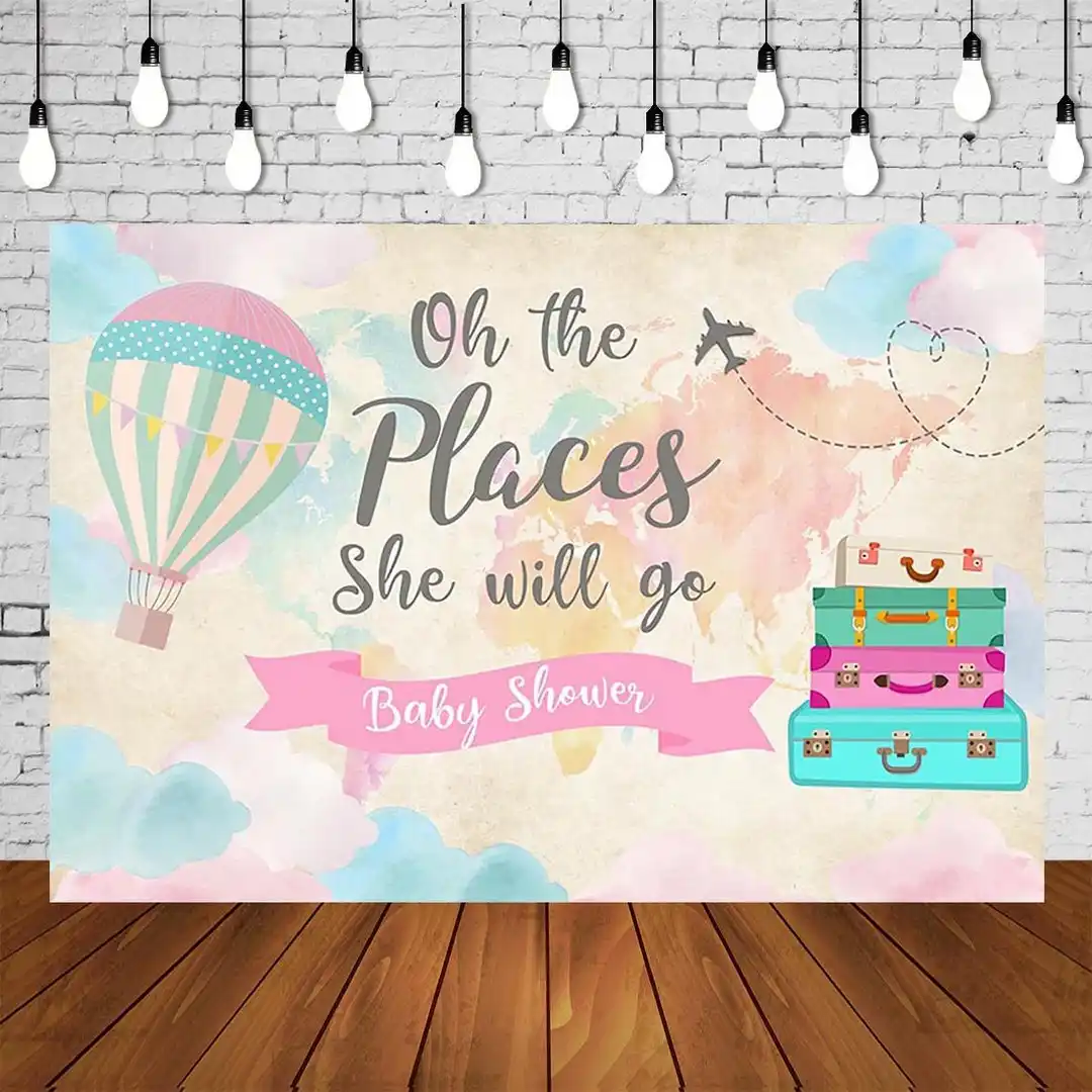 Girl Adventure Baby Shower Backdrop The Places She Will Go Babyshower Background Travelling Poster Explore Photo Booth Banner|Background| - AliExpress
