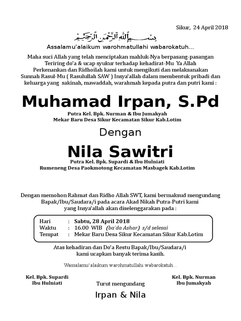 Contoh Undangan Pernikahan Doc, 10 Contoh Undangan Pernikahan Doc Gratis yang bisa die… | Contoh undangan pernikahan, Undangan pernikahan, Undangan pernikahan cetak
