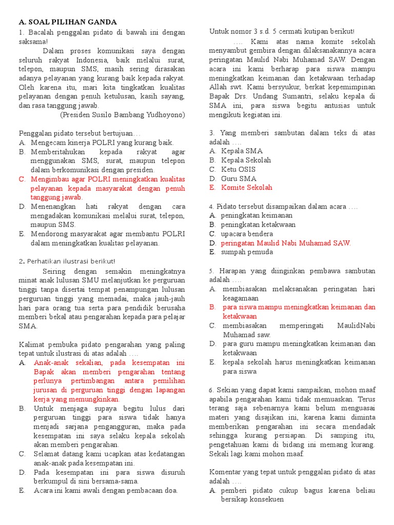 SOAL PAS BAHASA INDONESIA KELAS XI semester 1 2019