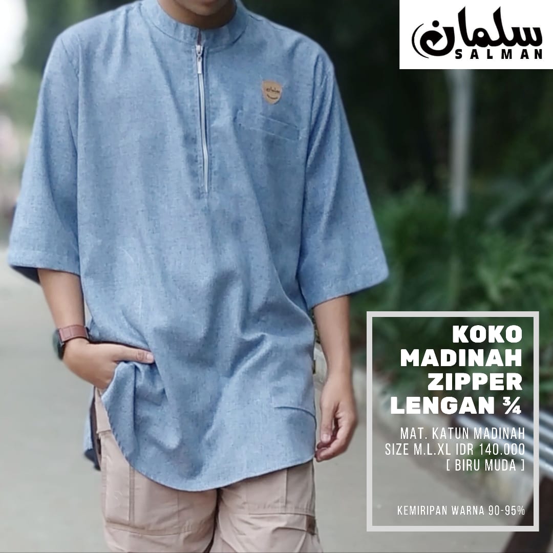BAJU KOKO MADINAH ZIPPER LENGAN 3/4 UNTUK DEWASA MEREK SALMAN