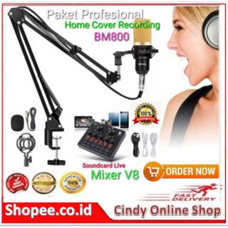 Best Top PROMO Paket Lengkap Home Recording Cover Lagu Smule Vlogger Youtuber Microphone Condenser BM800 Stand Suspension Pop Filter Soundcard di lapak tysporty | Bukalapak
