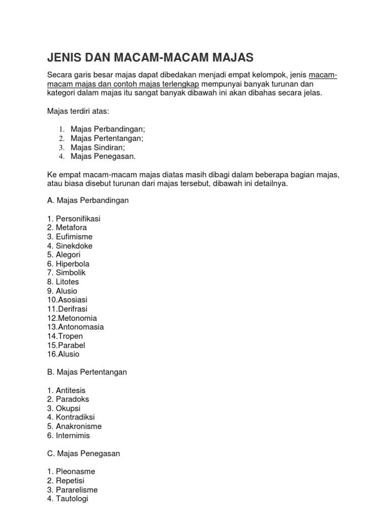 Macam Macam Majas Dan Contohnya Lengkap - Documents