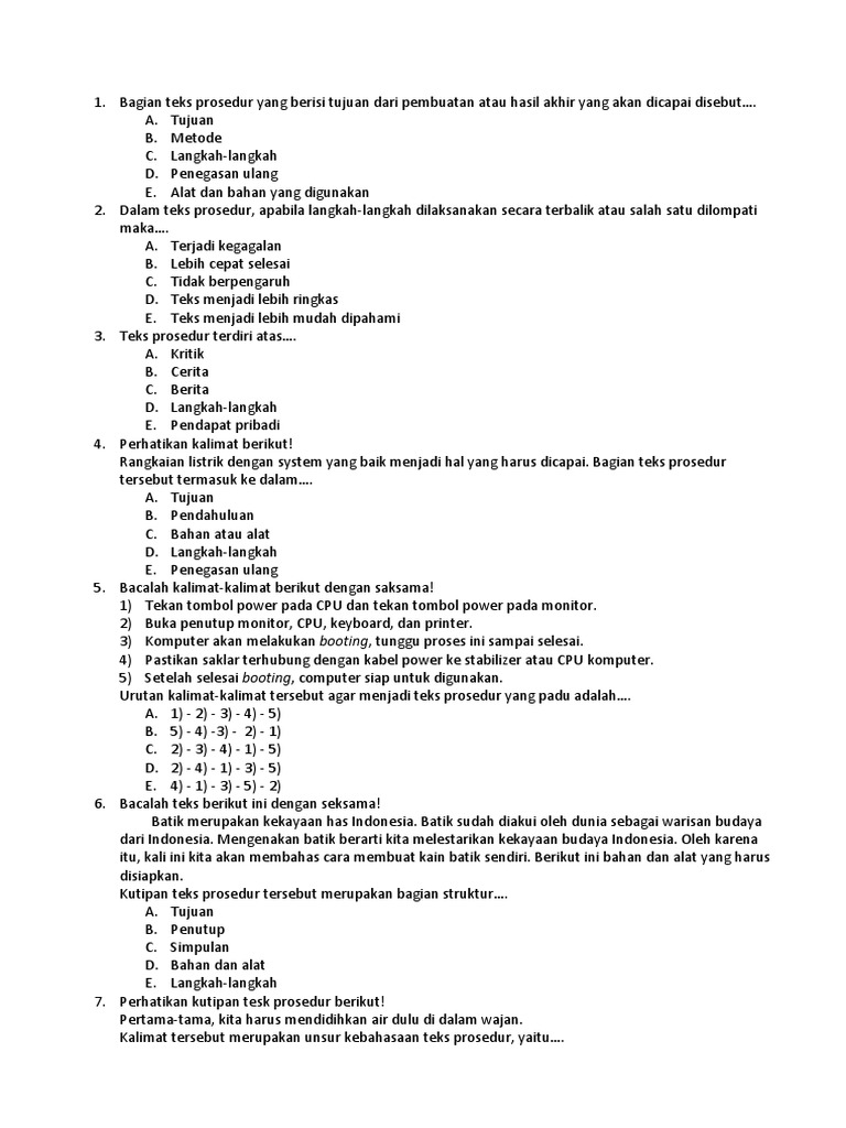 100+ Soal dan Jawaban Teks Prosedur - E-KELAS.COM