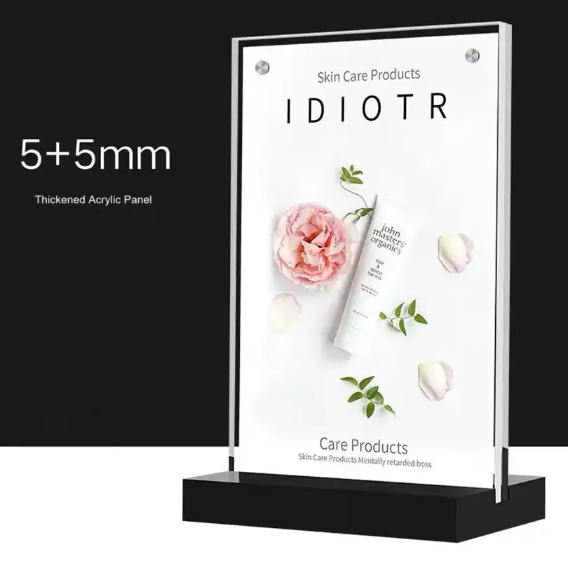 A4 Acrylic Magnetic AD Poster Display Stand Acrylic Table Desk Sign Name Card Label Holder With Black Base Picture Photo frame
