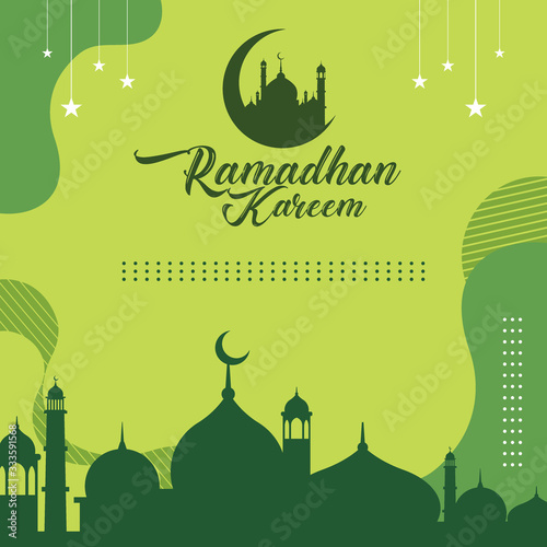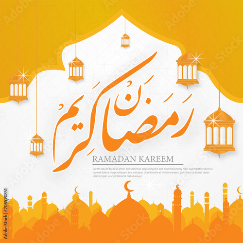 ramadhan kareem background template with calligraphy, lantern and mosque - Buy this stock vector and explore similar vectors at Adobe Stock | Adobe Stock