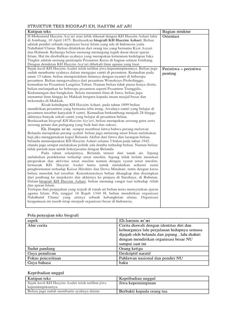 struktur teks biografi kh, hasyim as’ari