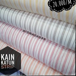 Kain katun strip dasar putih - lebar 150cm / bahan hem - harga per meter | Shopee Indonesia