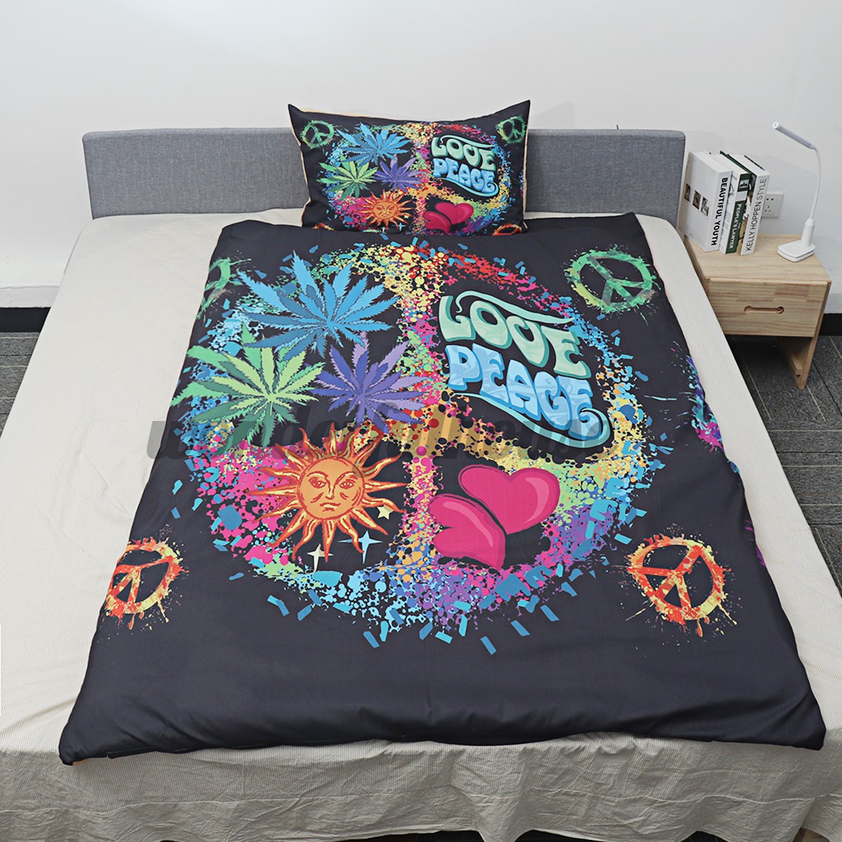 Becornce 3D Hippie Peace Love Pattern Bedding Quilt Comforter Duvet Cover Set Polyester | Shopee Singapore