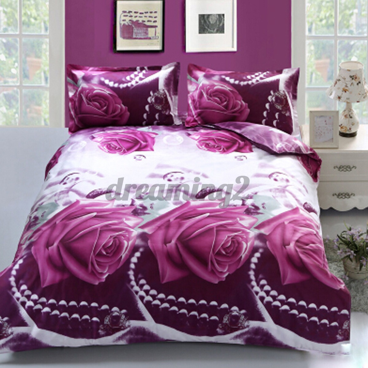 Queen Bedding Sets Girls, 3D Purple Rose Luxury Bedding Sets Flower Bed Linen Sets Bedroom Home Hotel Quilt Duvet Cover Adult Bedclothes Queen King Size-Rose-2pcs 150x200: Amazon.sg: Home