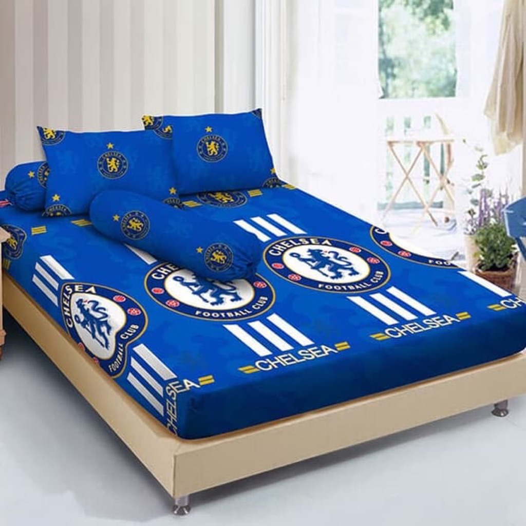 sprei katun, sprei set bedcover motif chelsea, sprei motif klub bola, | Shopee Indonesia
