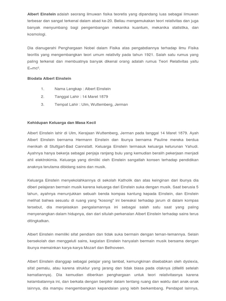 DOC) Biografi Albert Einstein Sang Penemu Rumus E=mc | Andyan Adlu Prasetyaji - Academia.edu