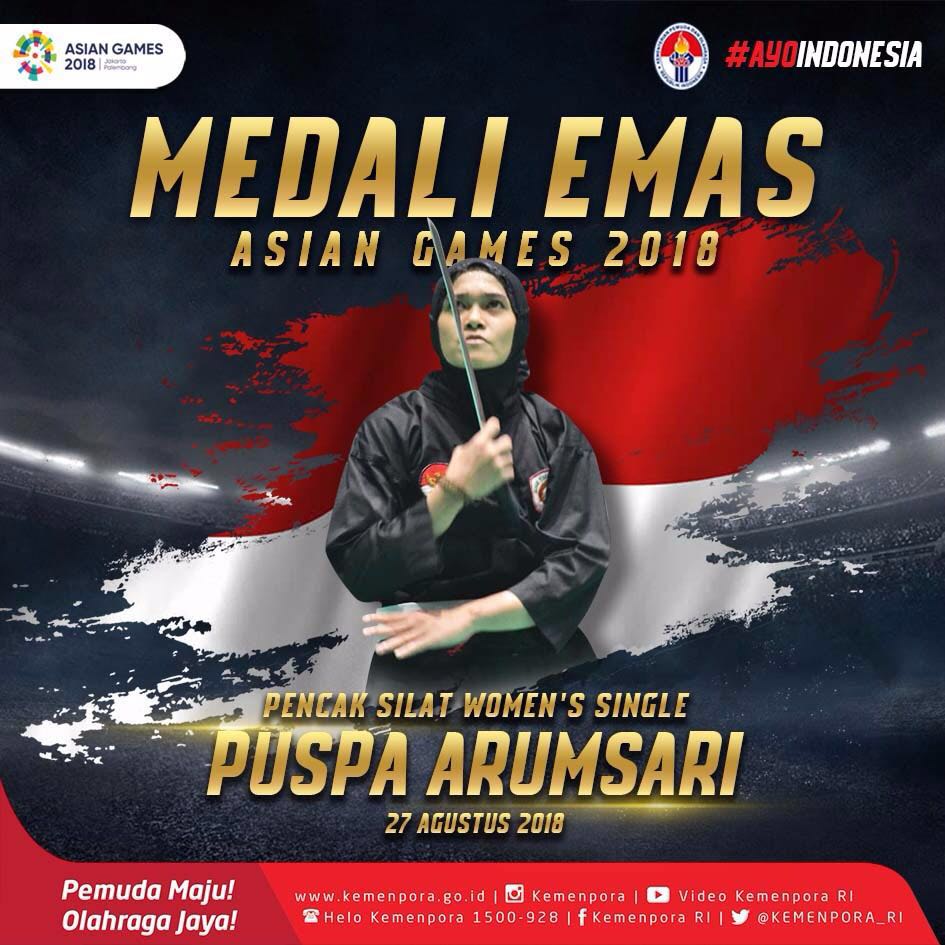 Kejaksaan RI en Twitter: “MEDALI EMAS KETIGABELAS!!! Atlet pencak silat Puspa Arumsari raih medali emas untuk Indonesia dari nomor tunggal putri di #AsianGames2018 . #AsianGamesKita #AyoIndonesia #BikinBanggaIndonesia #KejaksaanRI… https://t.co/cnVxYGig18”