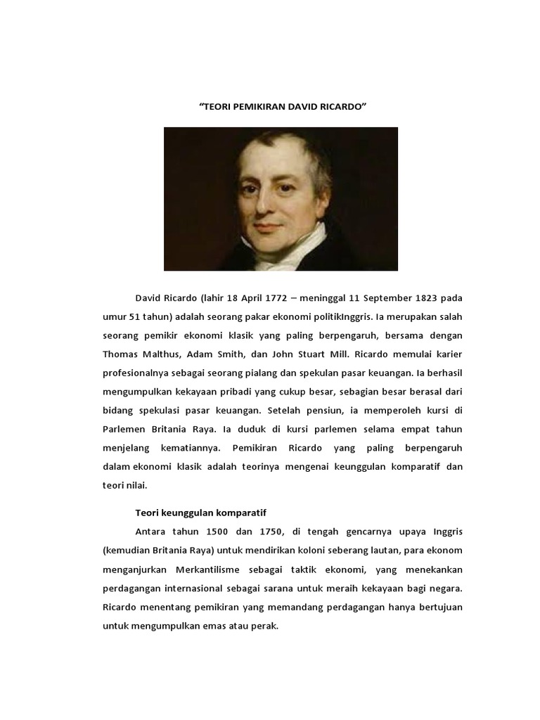Teori Ekonomi David Ricardo - Teori dan Strategi