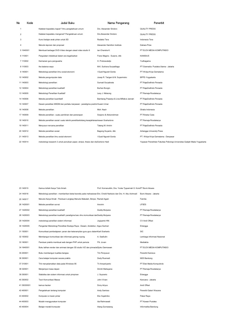No Kode Judul Buku Nama Pengarang Penerbit