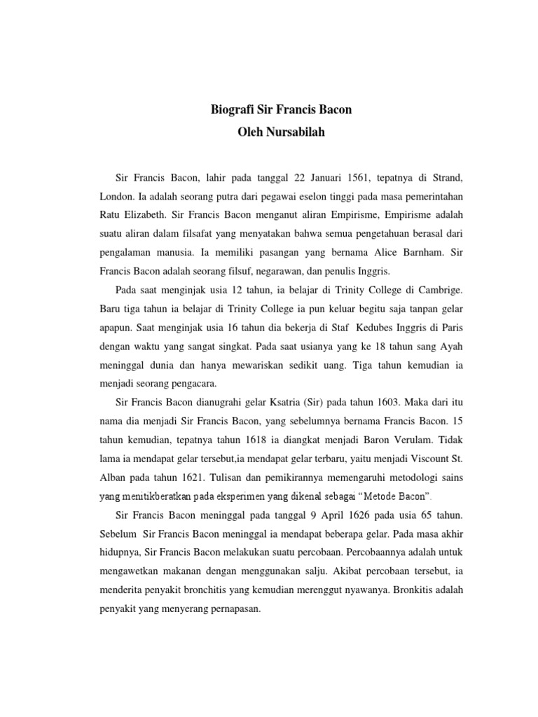 Biografi Sir Francis Bacon Oleh Nursabilah
