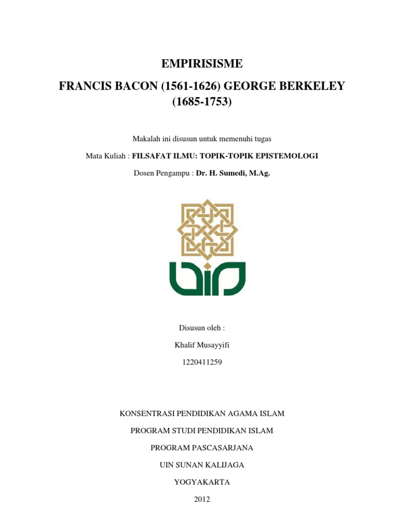 PDF) Analisis Pemikiran Francis Bacon | Siti Hasanah - Academia.edu