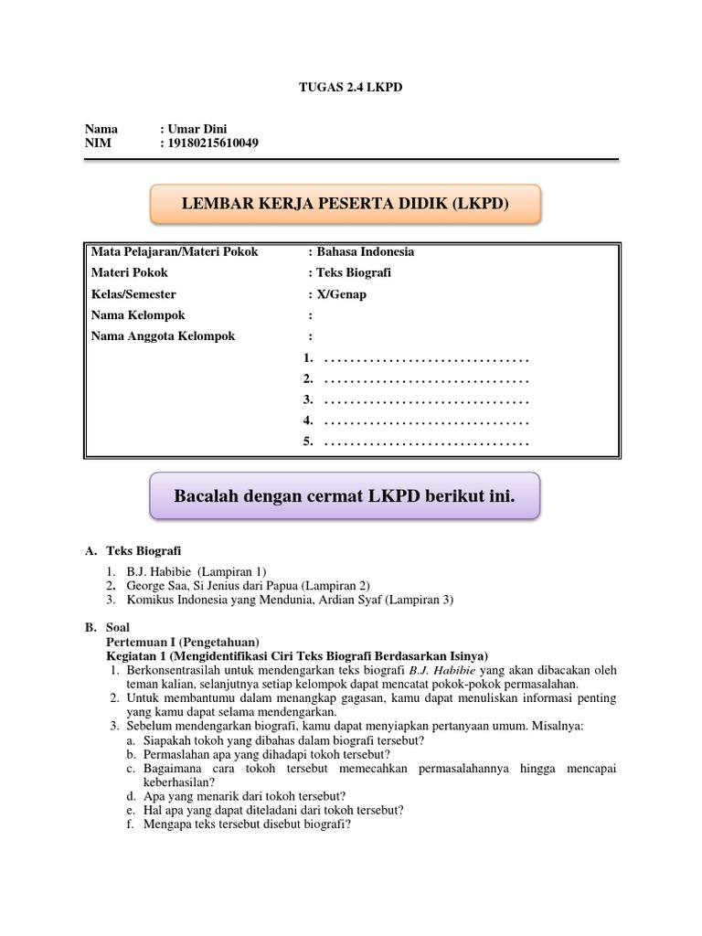 3.15 Menganalisis aspek makna dan kebahasaan dalam teks biografi. - 15. UKBM BIN 3.15 4.15 Teks Biografi
