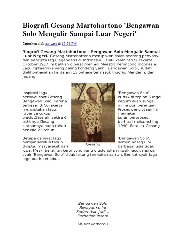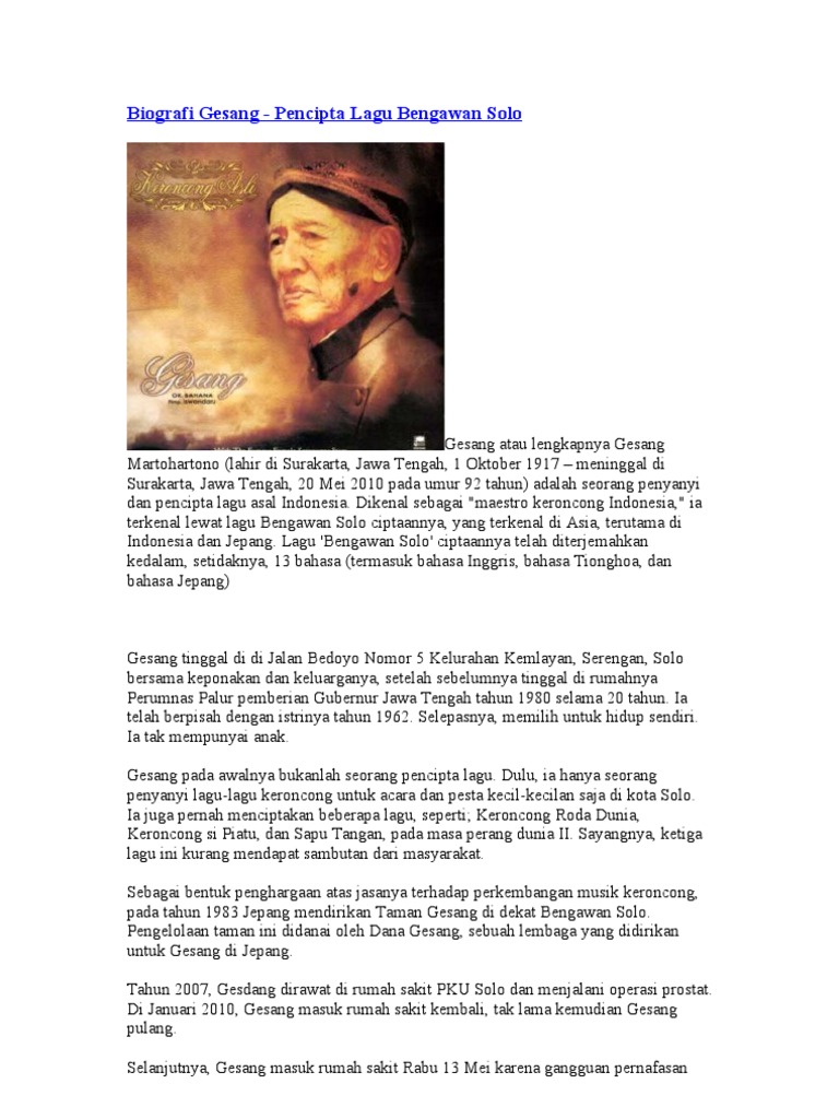 Biografi Gesang - Pencipta Lagu Bengawan Solo - Biografi.org