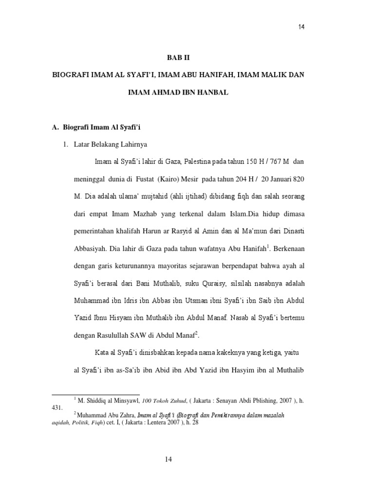 PDF) BAB II BIOGRAFI IMAM AL SYAFI’I, IMAM ABU HANIFAH, IMAM MALIK DAN IMAM AHMAD IBN HANBAL | Dani samdani - Academia.edu