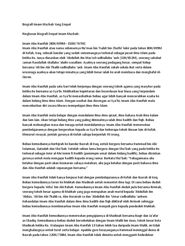 PDF) RINGKASAN RIWAYAT HIDUP 4 IMAM PENGASAS MAZHAB | Isromi Janwar - Academia.edu