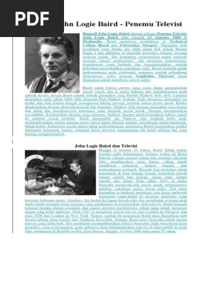 John Logie Baird.docx - John Logie Baird Biografi John Logie Baird dikenal sebagai penemu Televisi John Logie Baird lahir tanggal 13 Agutus 1888 di | Course Hero