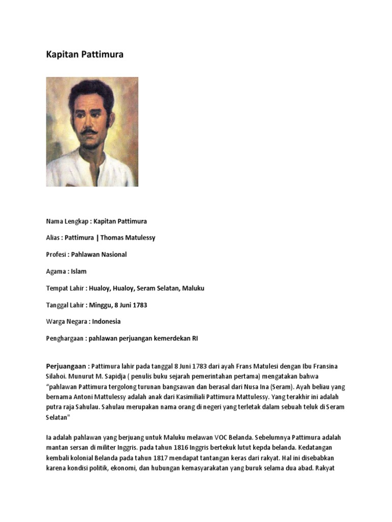 DOC) Biografi dan Sejarah Perjuangan Kapitan Pattimura | Hermansyah Sihombing - Academia.edu