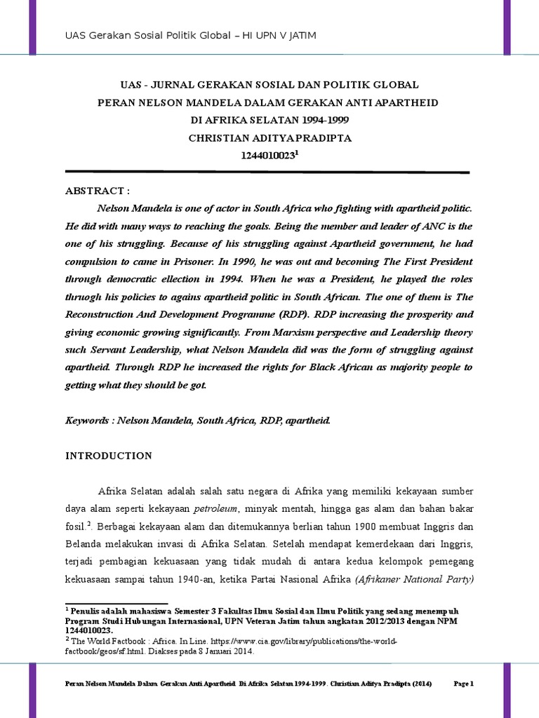 Uas Gspg - Peran Nelson Mandela Dalam Gerakan Anti Apartheid 1994-1999