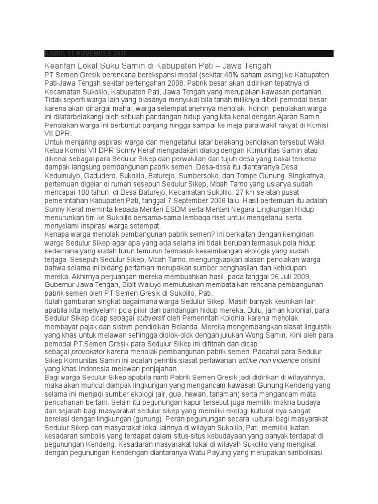 Tentang Masyarakat Samin | Catatan Sawali Tuhusetya