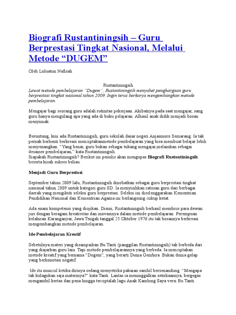 Biografi Rustantiningsih – Guru Berprestasi Tingkat Nasional, Melalui Metode “DUGEM” | Biografi Pengusaha Muda