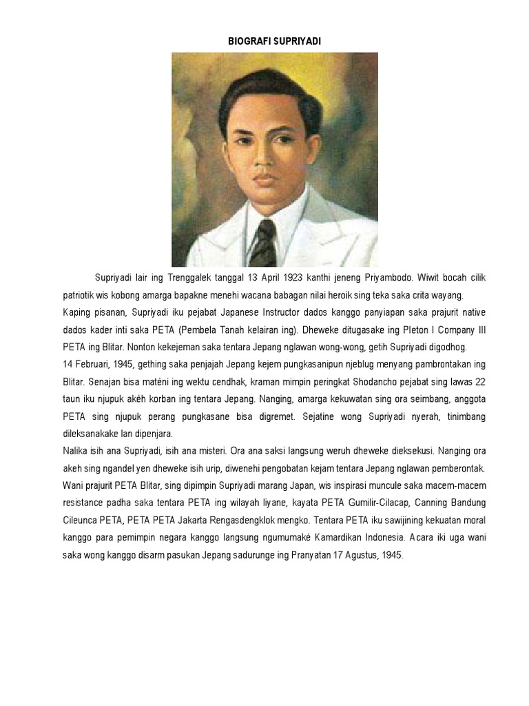 Biografi, #PahlawanNasional Profil dan Biografi Singkat Supriyadi ~ PETA - YouTube