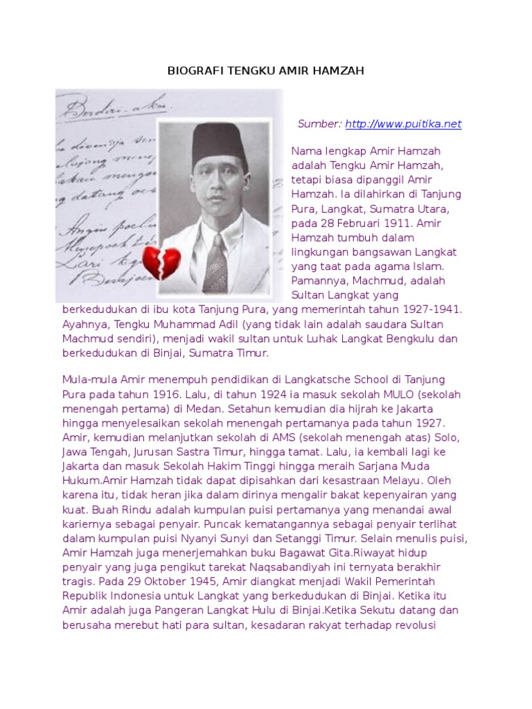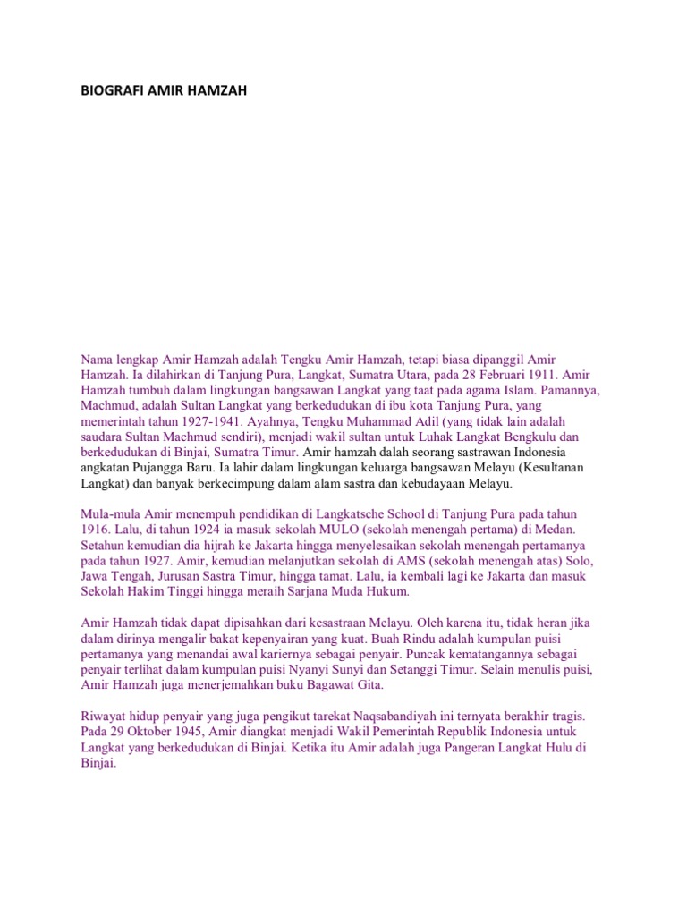 DOC) Biografi Tengku Amir Hamzah | tholib rizki maulana - Academia.edu