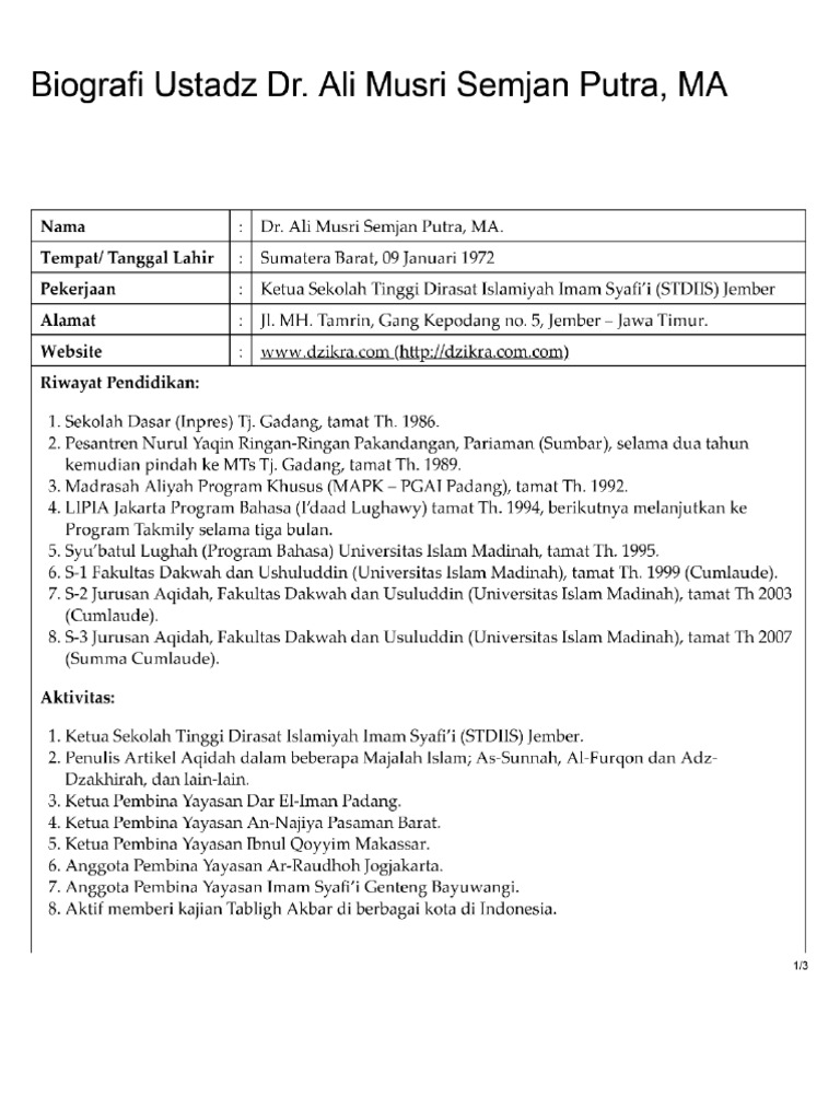 Biografi Ustadz Dr. Ali Musri Semjan Putra, MA ok