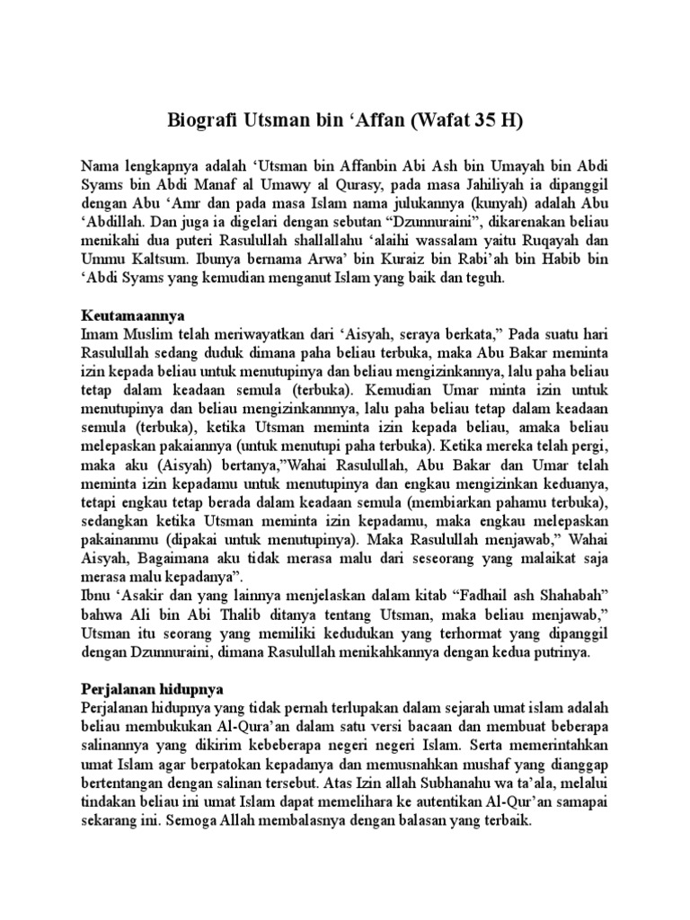 DOC) BIOGRAFI USTMAN BIN AFFAN | mardalena 68 - Academia.edu