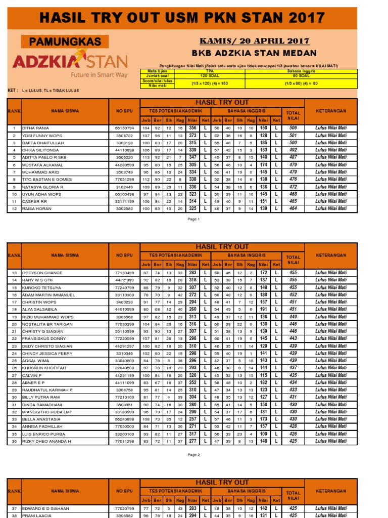 Hasil Try Out Pamungkas Medan 20 April 2017