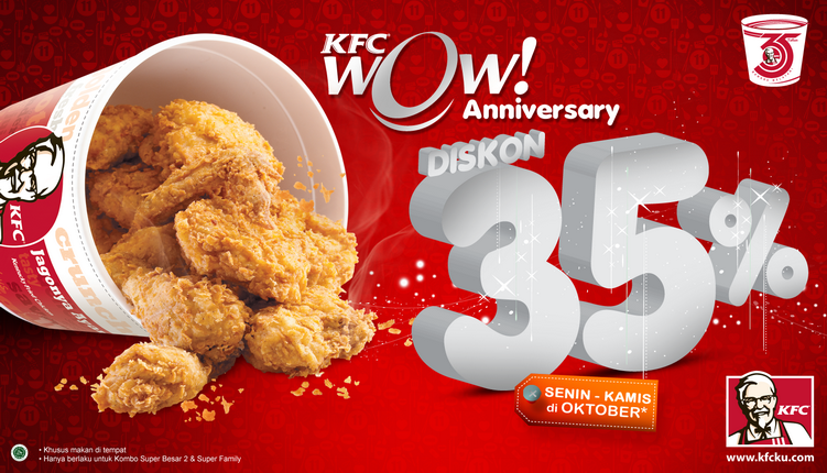 KFC Jagonya Ayam! : “Diskon 35 % untuk menu Super Besar 2 dan Super Family Hanya di Hari Senin s/d Kamis. S&K cek http://t.co/aooMk72gfg http://t.co/8QldNzPThk”