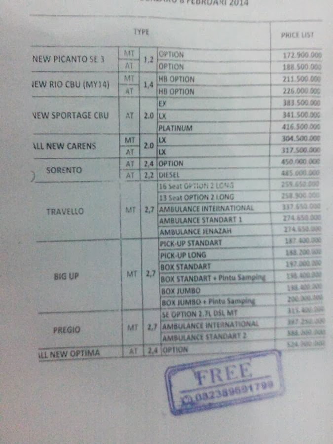 Daftar Harga Mobil KIA Baru 2014 | mobkas