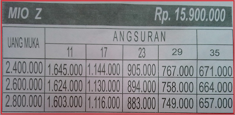 tabel angsuran mio z – Kredit Motor Yamaha Bandung