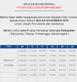 DAFTAR HARGA KREDIT SEPEDA MOTOR HONDA ~ HONDA NUSANTARA JAYA PURWOKERTO