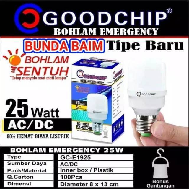 BOHLAM TABUNG 25 WATT GOODCHIP E1925 / LAMPU LED SENTUH EMERGENCY 25W / SB | Shopee Indonesia